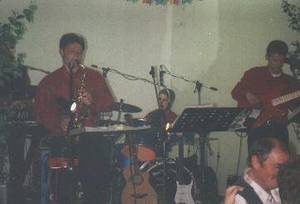 Dieser Tanzabend war ein wirklicher Erfolg und bald folgten weitere Auftritte zu Kirmesfeiern, Schützenfesten und Karnevalsveranstaltungen und Hochzeiten. Auf einmal waren wir so gefragt, dass jährlich 40 Auftritte zusammen kamen. Wir investierten in dieser Zeit unsere Gagen komplett in eine neue Anlage, sodass die alten Radioverstärker in der Versenkung verschwinden konnten und kauften neue Instrumente. 1994 bekam MARCANT Zuwachs. Frank (Franki) spielte von nun an Saxophon und erweiterte mit seinen brillanten Soli unser musikalisches Spektrum um ein Vielfaches. Leider mussten wir Ende ’97 unsere Band auflösen, weil Christian und André zum Bund eingezogen wurden. Niemand wusste, wie es mit MARCANT weitergehen sollte und ob es überhaupt noch einmal MARCANT geben würde. Trotzdem nahmen der Lange Bass- und Frank Gitarrenunterricht. ’ 99 nahmen wir den Probenbetrieb wieder auf, um erneut so richtig durchstarten zu können. Vorher gab es jedoch den ein oder anderen Mitgliederwechsel: der Kurze trat den Bassistenjob an seinen Zwillingsbruder ab und verließ die Band. Der Lange gab die Gitarre mit den 6 Saiten an Frank weiter und André teilte sich den Keyboardbereich mit seinem Bruder Sebastian (Omo) ,der zudem noch Akkordeon und Gitarre spielte. Jetzt konnten wir das Programm auch um wesentliche Titel erweitern und aktualisieren. Entscheidend trug dazu auch das ausdrucksstarke Trompetenspiel Michels (Tobias) bei, der Anfang 2000 zur Band dazustieß. Es dauerte nicht lange und der Terminkalender war wieder prall gefüllt. Am 08.12.2001 erlebten wir einen bandgeschichtlichen Höhepunkt: Wir feierten das zehnjährige Bühnenjubiläum. Highlights waren der Auftritt unsere befreundeten Tanzband THANAS und der Oldieband ESDANAS in deren Originalbesetzung von 1975.